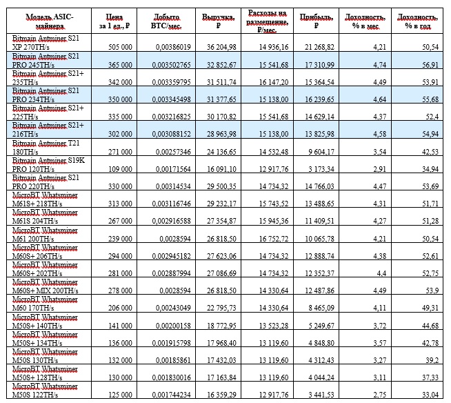 - Bitmain Antminer S21 PRO 245 TH/s — 4,74% мес. / 56,91% год;0,00350277 BTC
