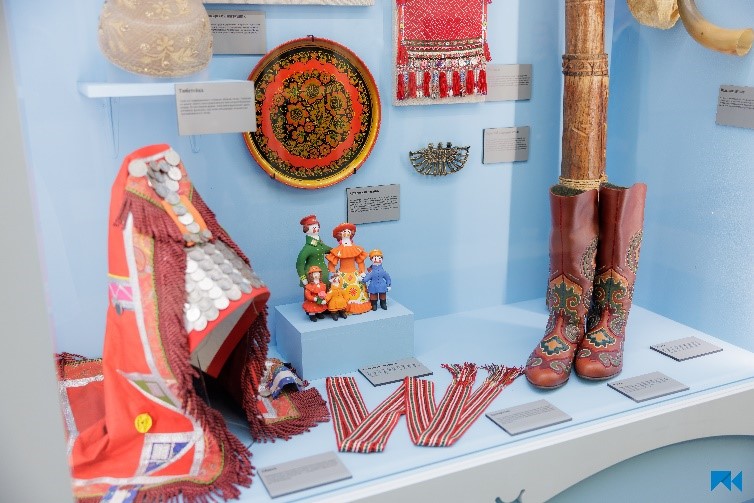 Экспозиция отражает культурное многообразие народов России и демонстрирует богатство национальных традиций, воплощённых в предметах быта, костюмах, музыкальных инструментах и украшениях из всех федеральных округов страны.